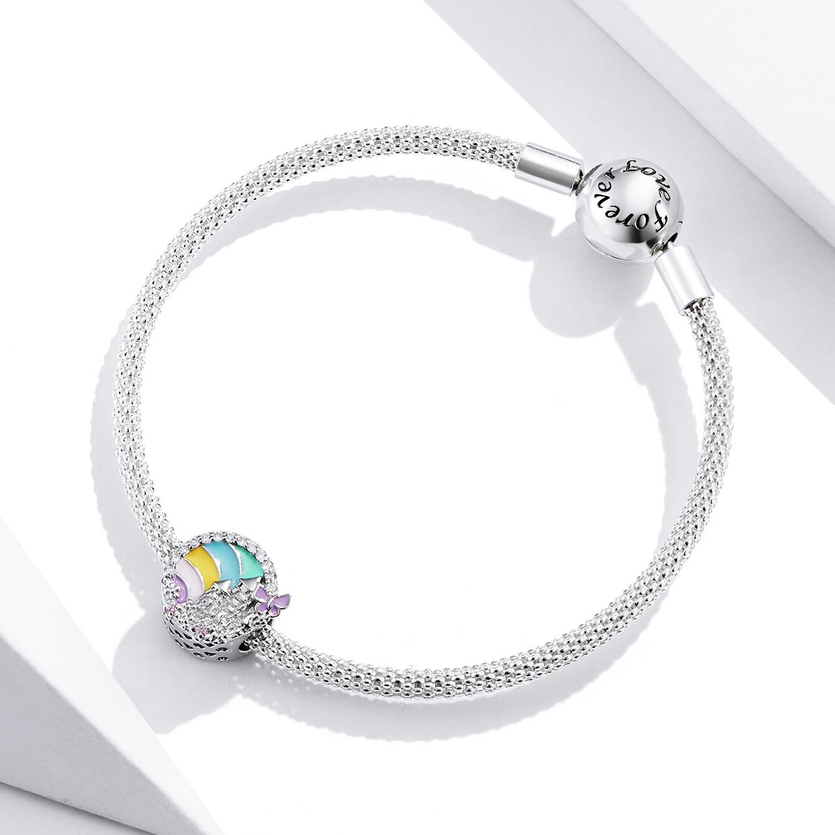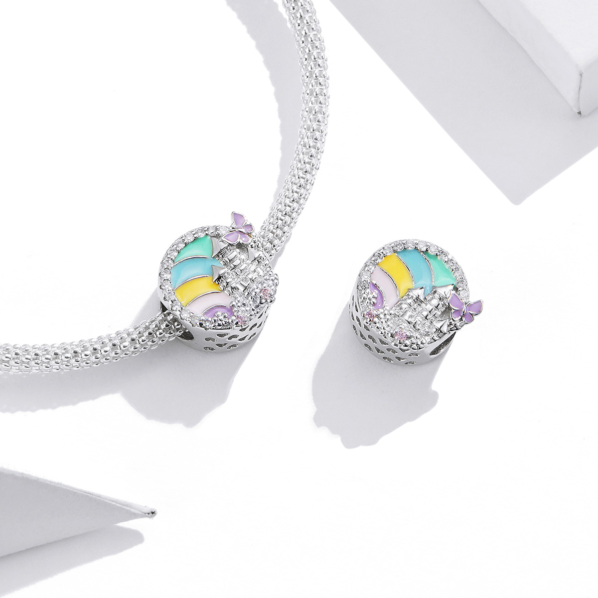 Vratite se u djetinjstvo, vrijeme kada je većina nas sanjarila o bajkovitom dvorcu u kojem je princ s kojim ćemo živjeti sretno do kraja života. Poželite čarobnu bajku dragoj osobi ili pak pokažite svojoj voljenoj srebrnim 925 privjeskom za narukvice Dvorac na kraju duge da ste Vi taj princ, ona Vaša princeza i stvorite veličanstvenu utvrdu satkanu od prekrasnih pastelnih boja duge i cvijeća te s ljepotom i lakoćom leptira stvarajte nove trenutke.