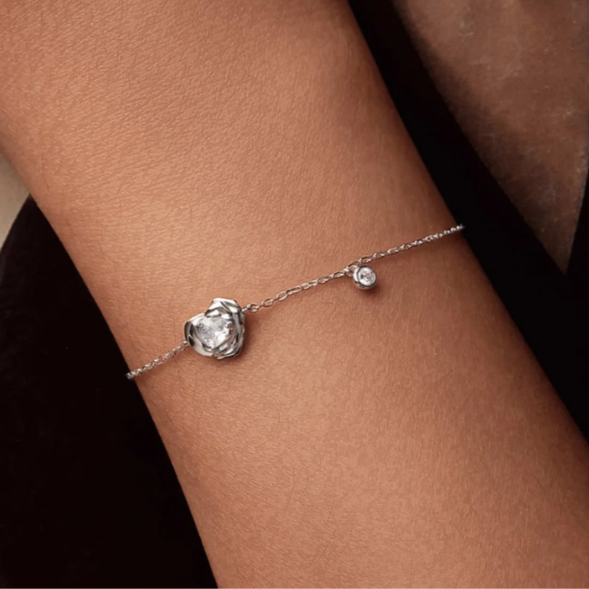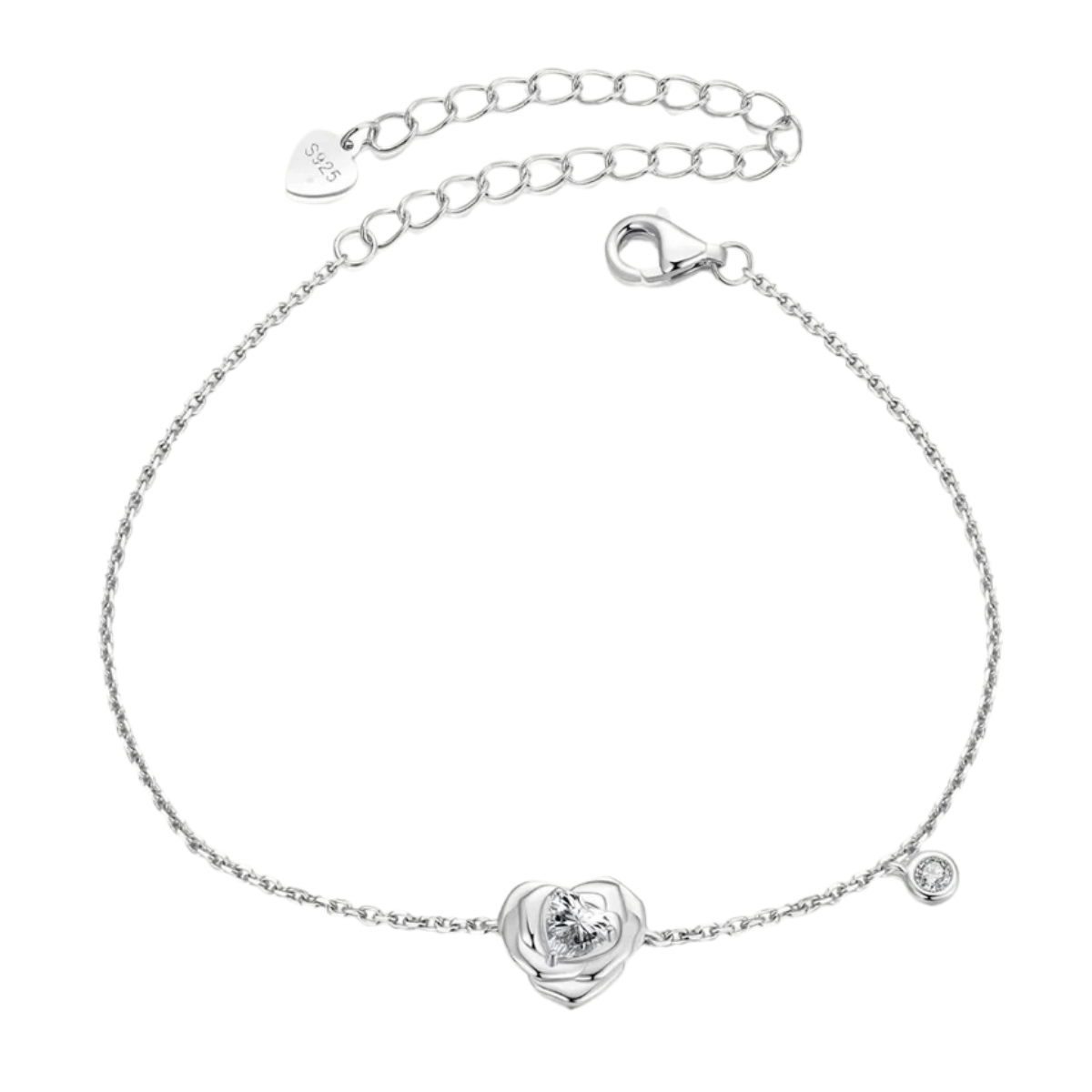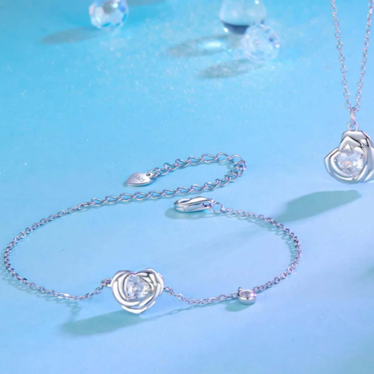 Ljubav ruže spoj je nježnosti, ljubavi i bezvremenske romantike. Središnji motiv ruže simbolizira duboku emociju, strast i iskrenu povezanost, dok srce predstavlja ljubav koja dolazi iz duše. Izrađena od srebra, ova narukvica odiše elegancijom i toplinom, čineći je savršenim znakom pažnje i osjećaja. Nježan dizajn prati liniju zapešća i suptilno naglašava ženstvenost, dok simbolika ruže i srca zajedno priča priču o ljubavi koja cvjeta i traje. Idealna je kao poklon koji nosi snažnu poruku bliskosti, nježnosti i vječne emocije.
