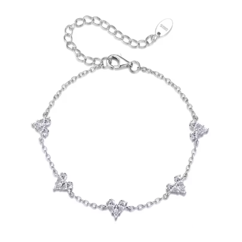 Ova profinjena srebrna narukvica ukrašena je s pet blistavih srca, koja nježno reflektiraju svjetlost i privlače pogled svojom suptilnom elegancijom. Pet srca nosi posebnu poruku, po jedno za ljubav, povjerenje, sreću, snagu i vjernost. Zajedno čine skladnu cjelinu koja predstavlja duboku emocionalnu povezanost i trajne vrijednosti. Ova narukvica nije samo ukras, već i podsjetnik na ono što je u životu najvažnije — ljubav i bliskost.