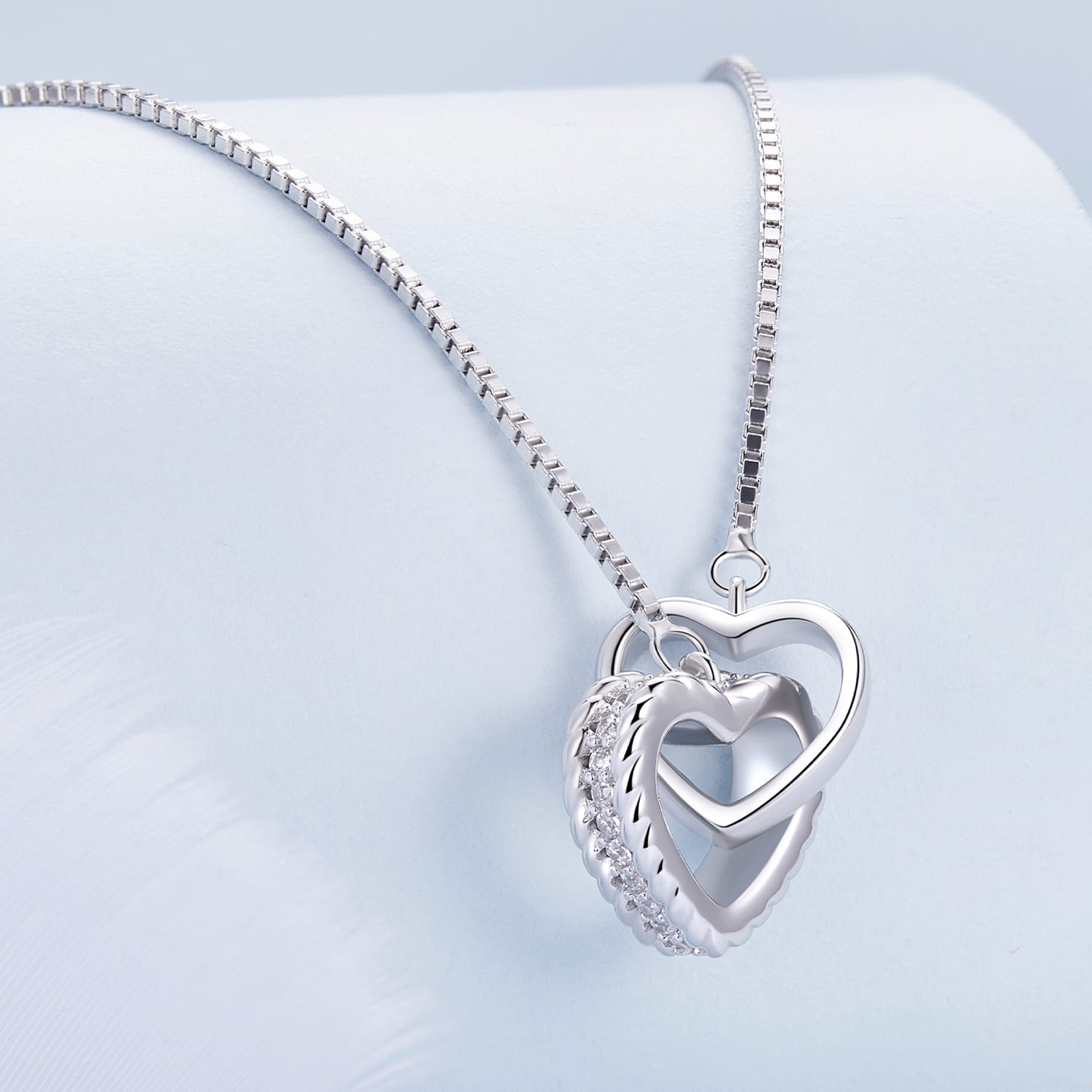 Povežite dva srca u jedno i neka vaša srca kucaju u istom ritmu. Počastite sebe ili pak poklonite dragoj osobi ovu predivnu srebrnu ogrlicu da ju nosi kao svakodnevni podsjetnik na snagu vaše ljubavi i neraskidive veze.