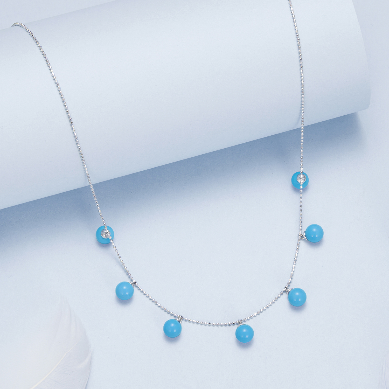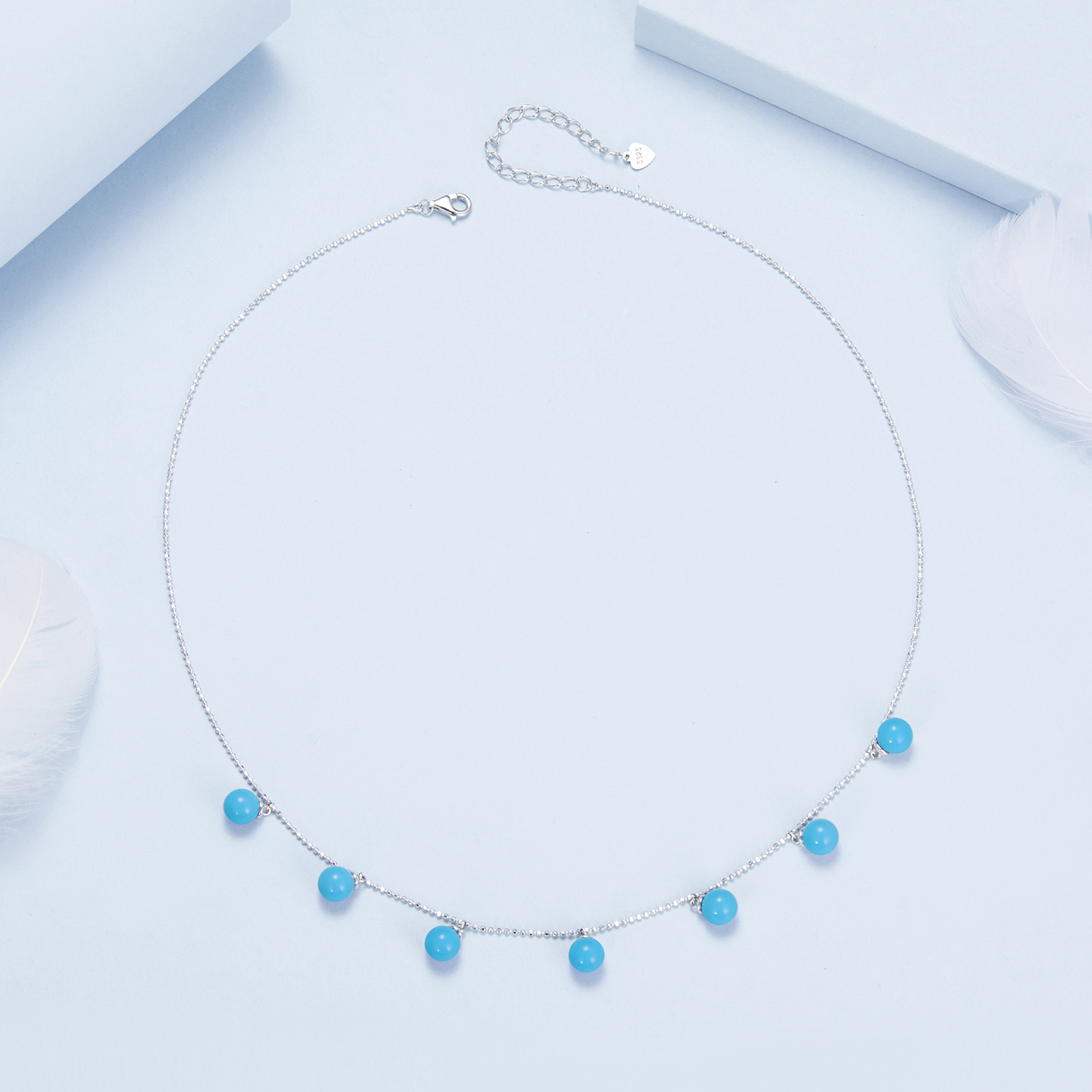 Srebrna ogrlica čistoće 925 + sintetički tirkizni materijal.