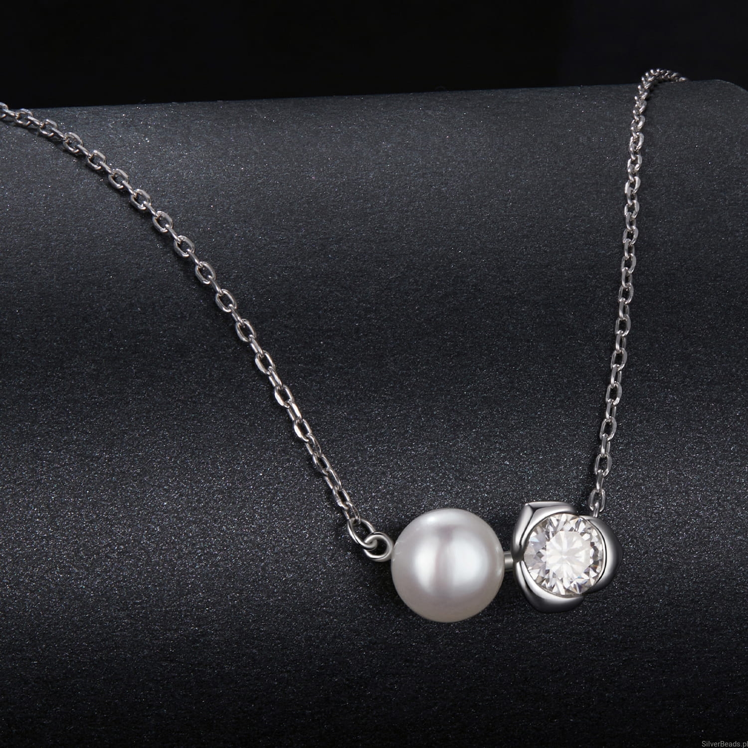 Srebrna ogrlica čistoće 925 + moissanite + perla.
