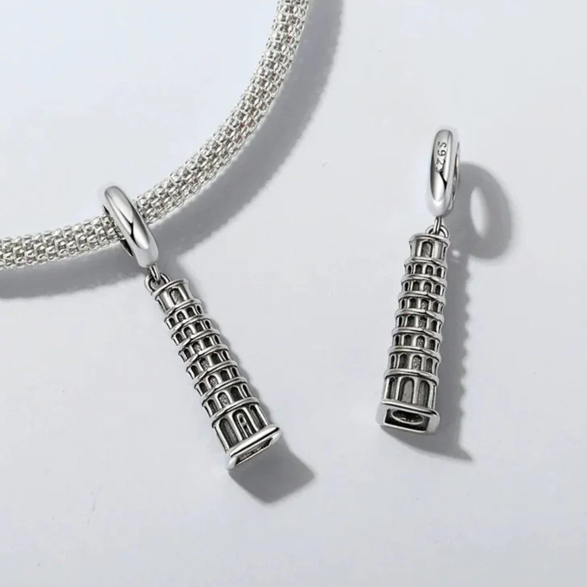 Ovaj elegantni srebrni privjesak u obliku kosog tornja u Pisi savršen je za sve zaljubljenike u putovanja i arhitektonske ljepote svijeta. Izrađen od srebra 925, s preciznim detaljima koji dočaravaju čar ove svjetski poznate znamenitosti, simbol je avanture, kulture i nezaboravnih uspomena. Nosite ga kao podsjetnik na Vaše putovanju u Italiju ili inspiraciju za buduće avanture!