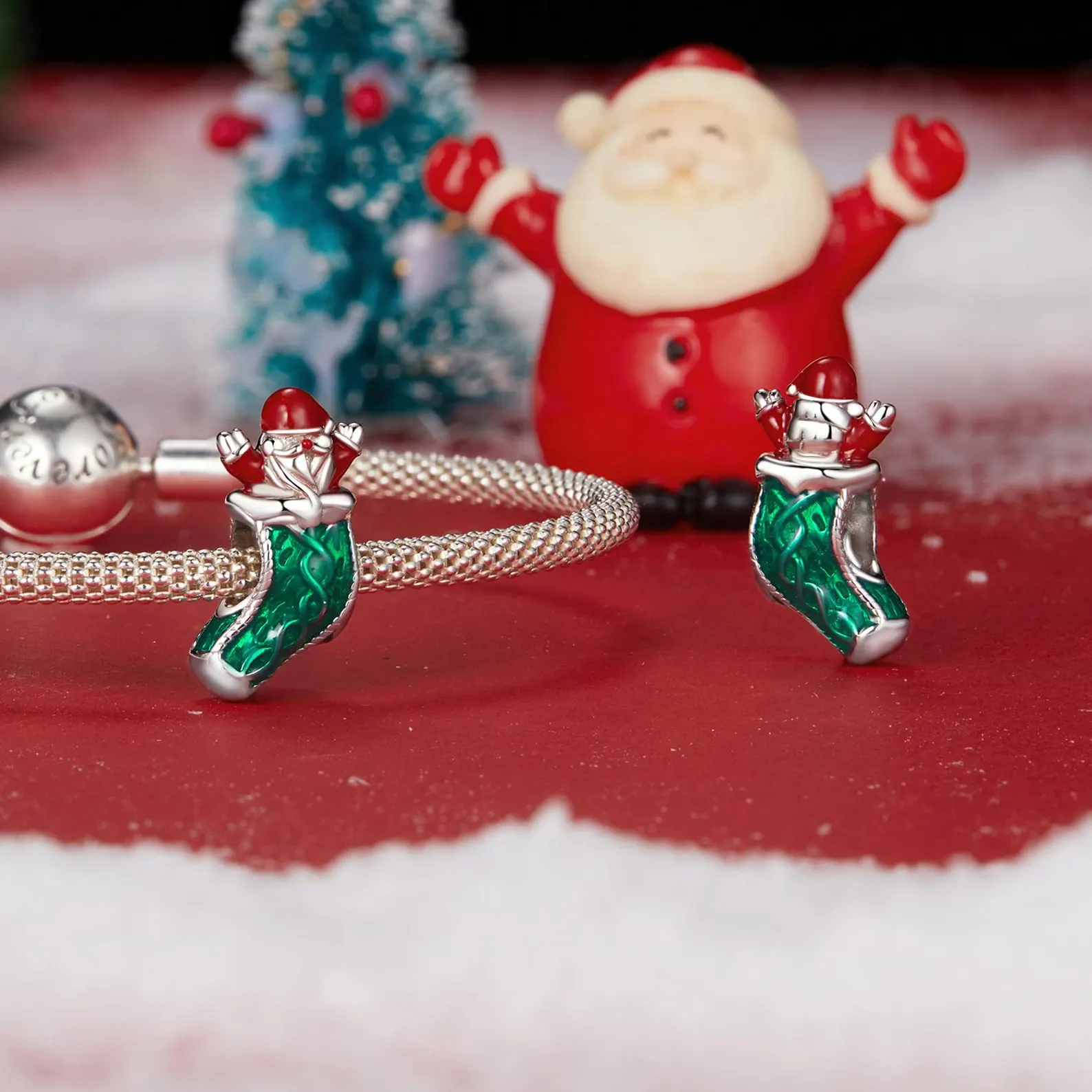 Nasmijani Djed Božićnjak veselo izranja iz pletene zelene zimske čarape, spreman donijeti radost i iznenađenja. Čarapica simbolizira iščekivanje, darivanje i male znakove pažnje koji donose najveću sreću, dok Djed Božićnjak utjelovljuje dobrotu, velikodušnost i duh zajedništva. Kombinacija srebra, zelene i crvene boje daje mu klasičan, prepoznatljiv božićni šarm. Ovaj privjesak podsjeća nas da je prava čarolija blagdana u dijeljenju – toplih riječi, osmijeha i trenutaka s onima koje volimo.