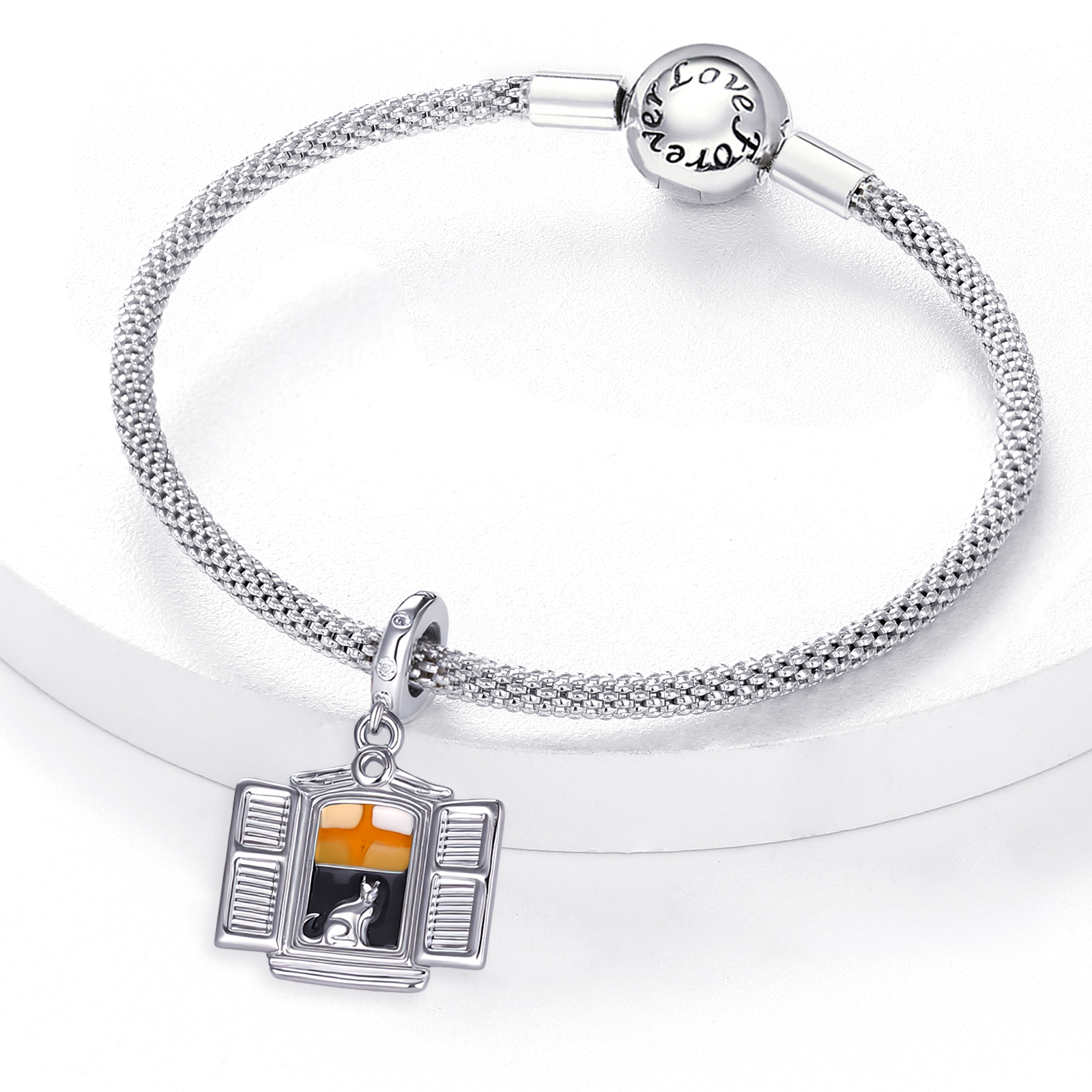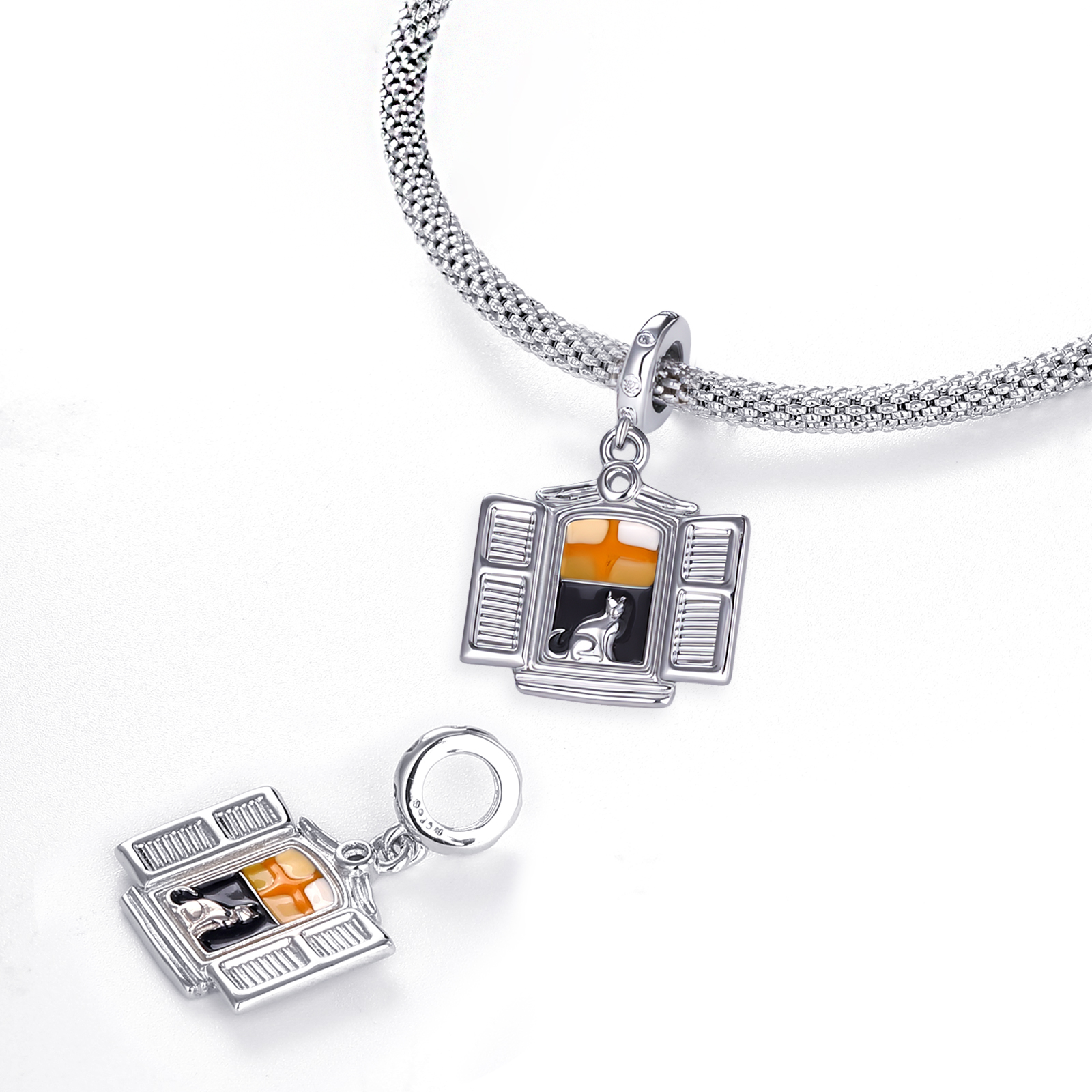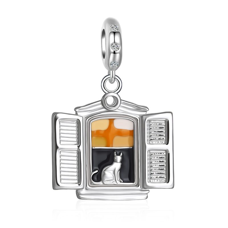 Na starim, kamenim kućama uz more, gdje sunce polako zalazi i boji zidove u zlaćane tonove kroz otvorene škure, mačka, tiha čuvarica tih čarobnih minuta, kao da sjedi između dvaju svjetova. Ona pozorno promatra, ali ne žuri. Ovaj čest motiv malih mjesta uz našu obalu simbolizira smirenost, neovisnost i sposobnost da budemo prisutni u sadašnjem trenutku, bez potrebe da ga mijenjamo. Male, svakodnevne scene postaju uspomene, gdje prizor otvorenog prozora simbolizira slobodu, tople boje zavjesa imaju odsjaj ljeta i djetinjstva, a pitoma maca na prozorskoj dasci osjećaj doma. Nositi ovaj privjesak znači nositi mali komadić obale – mjesto gdje vrijeme usporava, a srce pronalazi mir kada zastaneš, udahneš i osjećaš da je sve upravo onako kako treba biti.