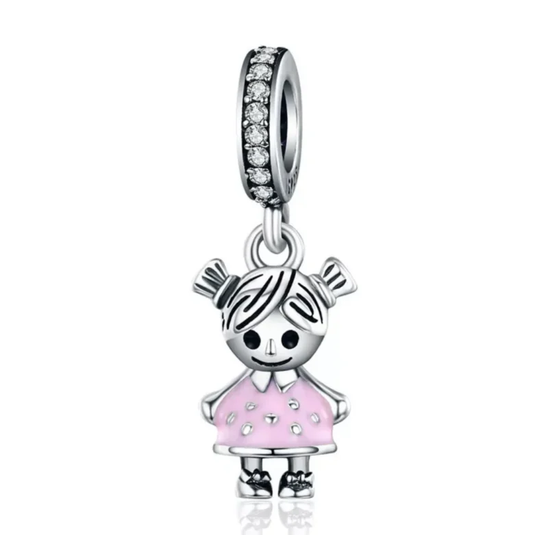 Bila mala ili velika Vaša kćerka za Vas će uvijek biti princeza. Pokažite joj koliko je bitna u Vašem životu i nosite prekrasni privjesak Sretna djevojčica napravljen od najfinijeg srebra 925 te posebno oslikan sa rozim emajlom. Naša djevojčica nosi ružičastu haljinu ukrašenu svjetlucavim srebrnim točkicama. Ovaj privjesak možete nositi samostalno ili ga upotpuniti sa ostalim privjescima posvećenima obitelji.