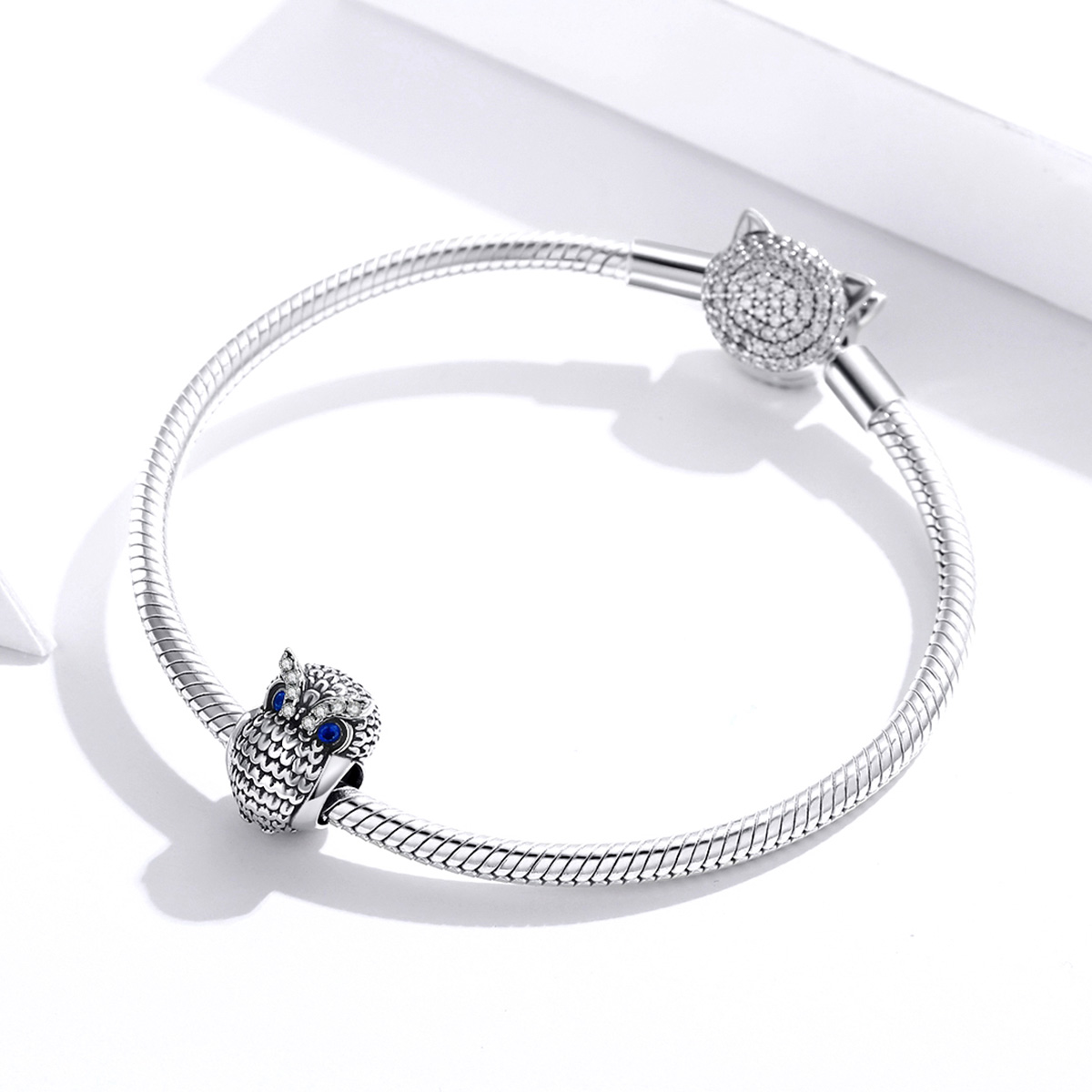 Srebrni 925 privjesak za narukvice sa jako detaljnim prikazom Mudre sove ima izrazito pozitivno značenje, jer je zbog njene prirodne sposobnosti da čak i noću jasno vidi na veliku udaljenost, ukazuje na stvari koje inače mogu ostati skrivene. Sove je mudra, inteligentna i moćna životinja pa se kroz povijest vezivala uz učene ljude visokog statusa. Danas je sve omiljenija među studentima i učenicima, koji često zbog akademskih obaveza aktivno uče i sami postaju “noćne ptice”. Privjesak je ukrašen sa dva kraljevsko plava cirkona, čija boja donosi harmoniju duha, uma i tijela, pa ste spremni podsjetiti se na mudrost i snagu u Vama.